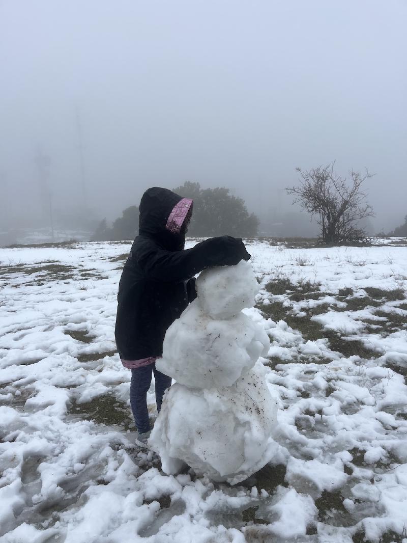I went to black mountain with a friend. Half way, i saw snow! Here in the coast of California, it rarely snows! We parked and daddy had trouble parking, since there was a lot of snow. Soon my friend came. We had to wear super heavy cloth, ‘cause it was cold. At first, the snow was a shade of muddy brown, but soon it was a bright white clump. It was so windy 🌬️ that for a moment, i felt like i was being pushed by the wind, and it was so foggy that i couldn’t even see the tower on the top of the building. On the top, we built an ugly snowman, it was brown and i felt like it will topple the second i prod it. We went back down the whole mountain 🏔️ and soon said our good byes.